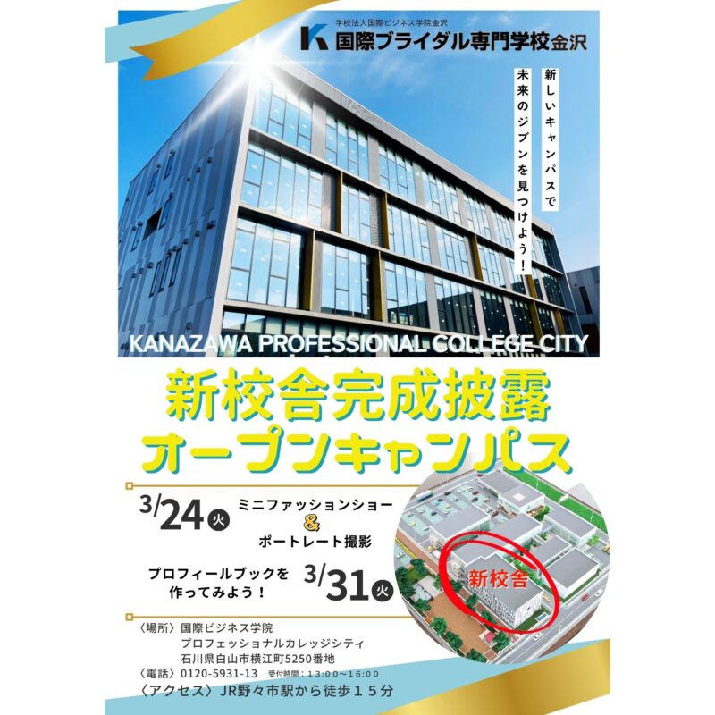 3月24日からは新校舎でオープンキャンパスを行います。