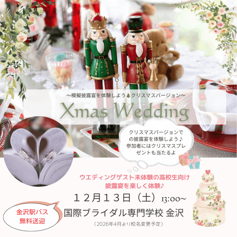 12月13日(土)のオープンキャンパスではクリスマスバージョンの模擬披露宴を行います⭐